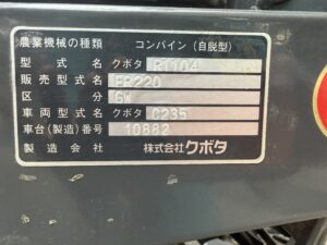 | 仕様/備考 | ・2条刈/全面刈り・水冷4サイクル3気筒立形ディーゼル・20馬力・グレンタンク(590L)・主変速:前進無段/後進無段・副変速:移動/N/作業・刈楽スイッチ(作業スイッチ)・オートクラッチスイッチ・自動こぎ深さ制・左分草かん開閉レバー・サイズ(約) 全長3350mm×全幅1700mm×全高2000mm・スイスイデバイダ付き |