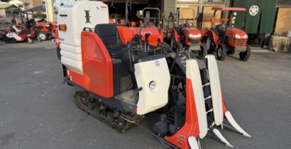 ★仕様★•機体寸法:全長3470mm全幅1690mm全高1980mm•機体質重:1275kg•3条全面刈り•20馬力 3気筒ディーゼル•650Lグレンタンク•折り畳み式オーガー•走行: 油圧モーター式HST無段変速機•楽刈スイッチ•自動こぎ深さ制御•刈取オートクラッチ•アンローダー自動旋回装置•アンローダー排出位置選択•自動エンジン停止装置•集中注油•刈取変速 切替•分草かんオープン•ドロッパ、カッタ切替